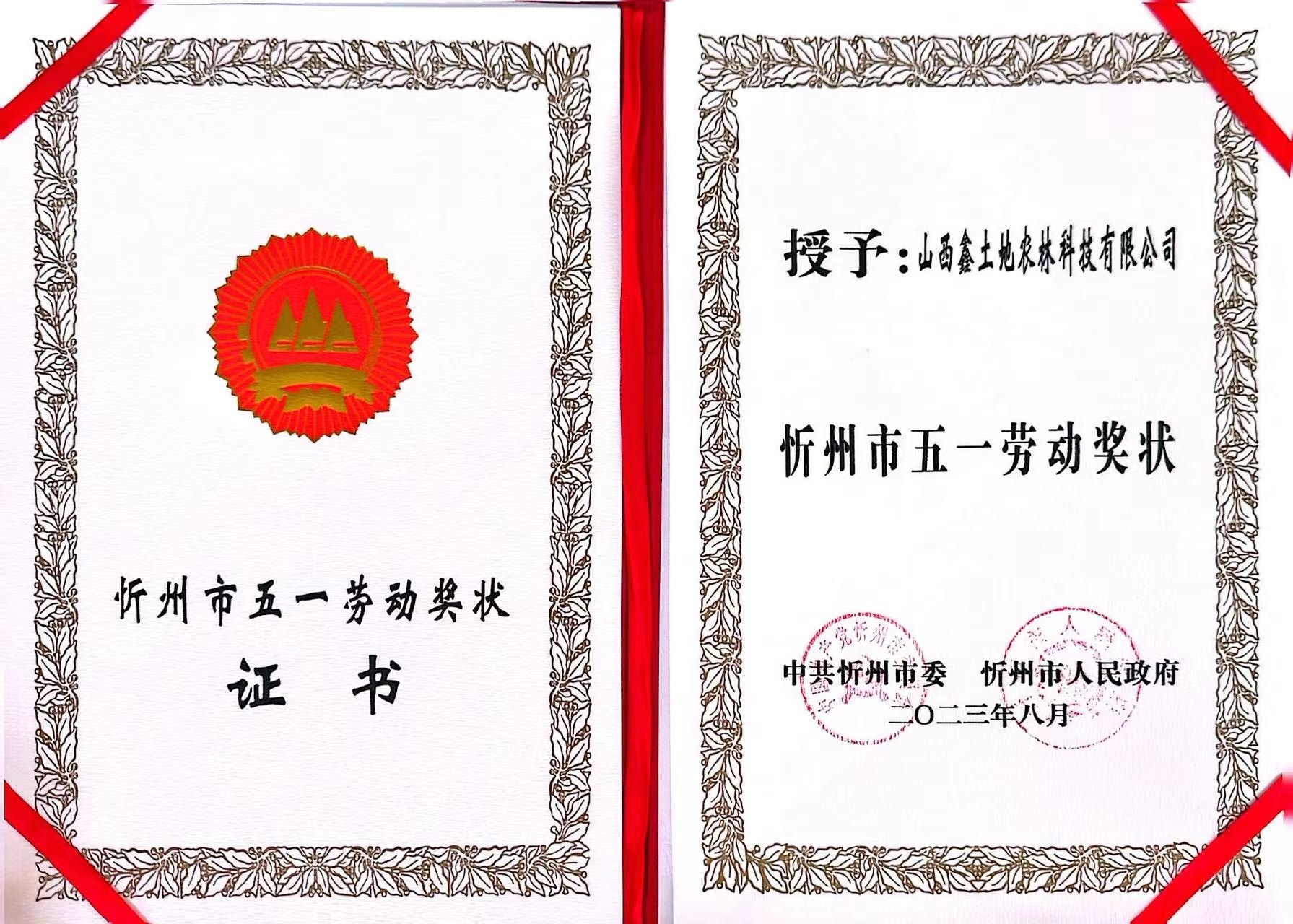 近日,中共忻州市委、忻州市人民政府公布了《關于表彰2023年忻州市五一勞動獎的決定》,集中對29個忻州市“五一勞動獎狀”獲得單位,149名忻州市“五一勞動獎章”獲得者及49個忻州市“工人先鋒号”獲得集體進行了表彰。山西鑫土地農林科技有限公司榮幸授彰,榮獲2023年忻州市五一勞動獎狀!